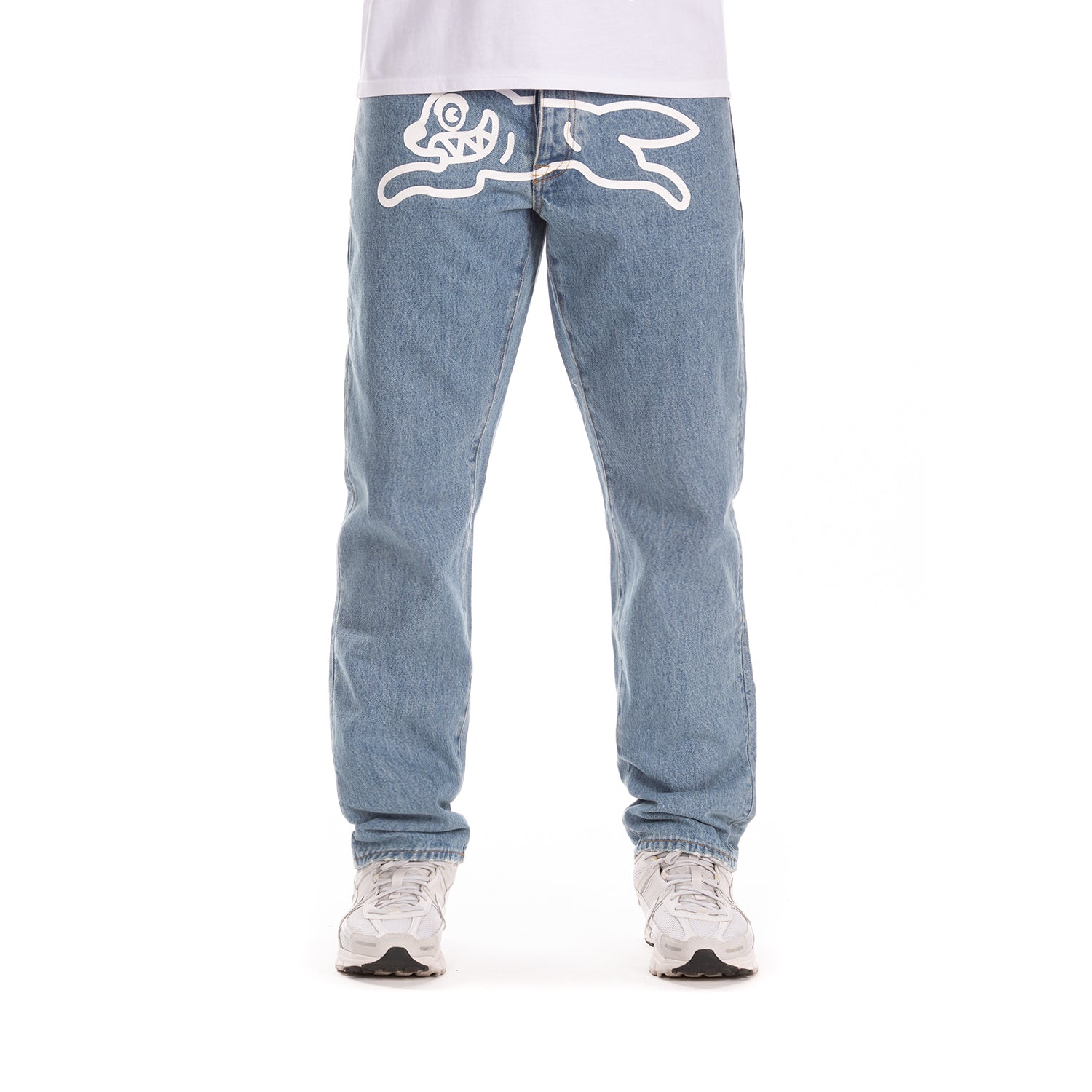 - Denim jeans by Icecream featuring iconic running dog graphic print for bold streetwear appeal