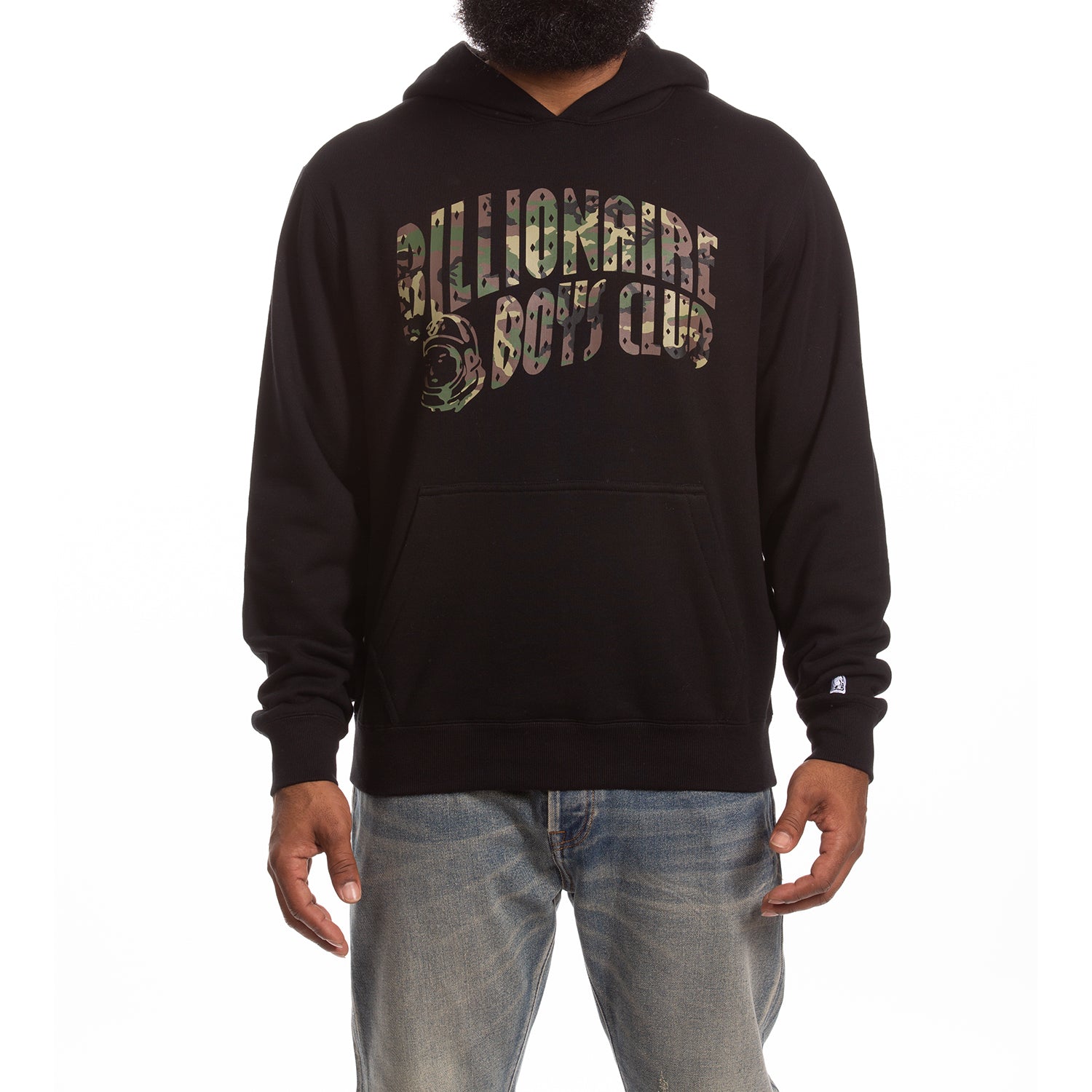 - Billionaire Boys Club pullover hoodie featuring bold camo-filled arch logo with iconic astronaut graphic for a signature streetwear look