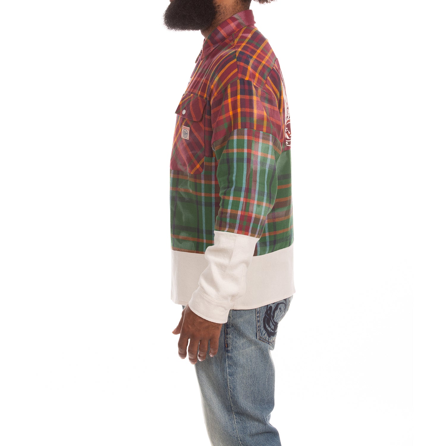 - This BBC woven LS features a unique tri-colour design all over, (Pattern may vary), a button closure front, a collar, two button closure chest pockets, a collar, and the BBC brand name on the back side. The buttons are different colours in real life than shown in the full torso frontal images: They used to be white and are now brown.