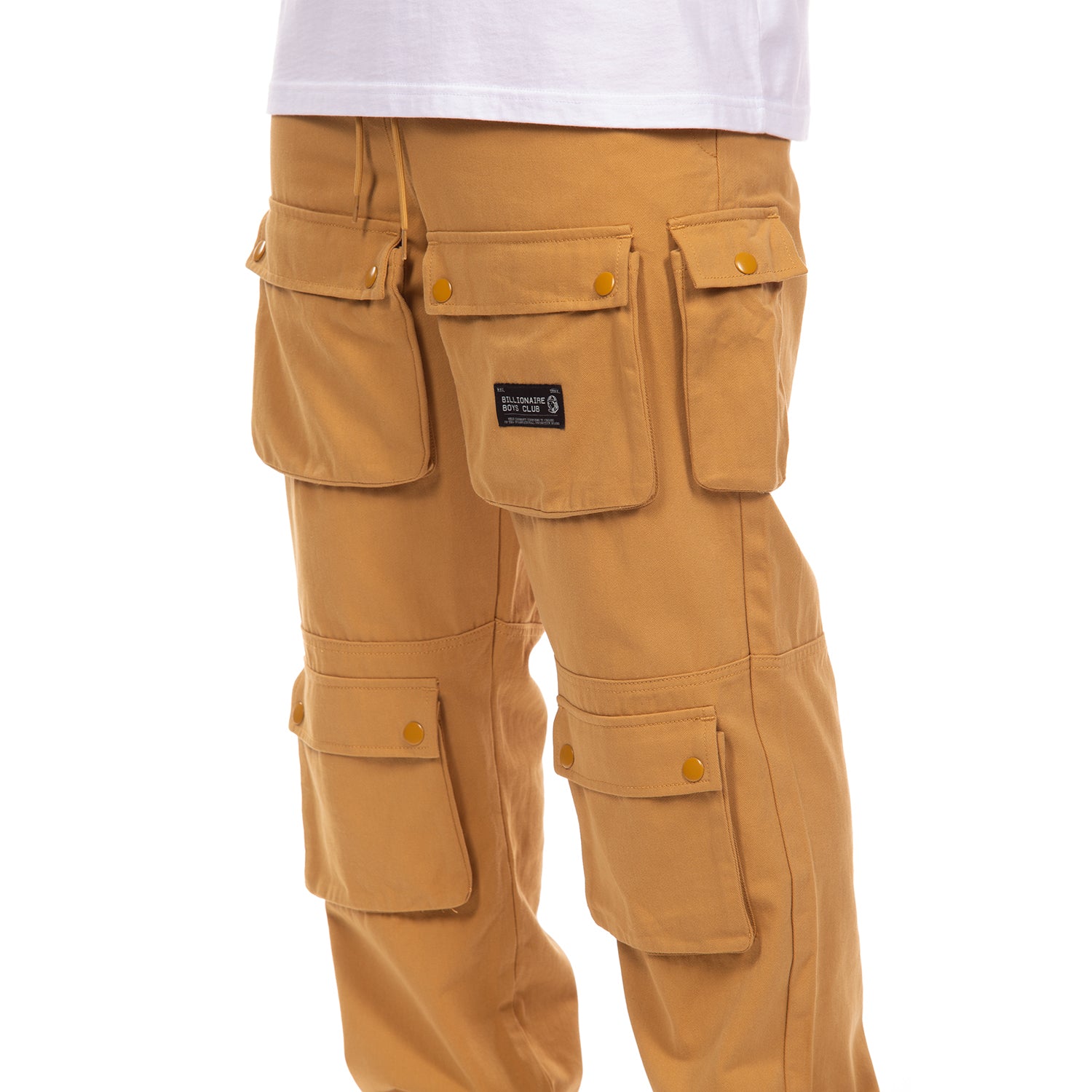 - These BBC cargo pants feature a unique design of 4 large button closure pouch pockets on the front, two on the sides, and one back slit pocket.