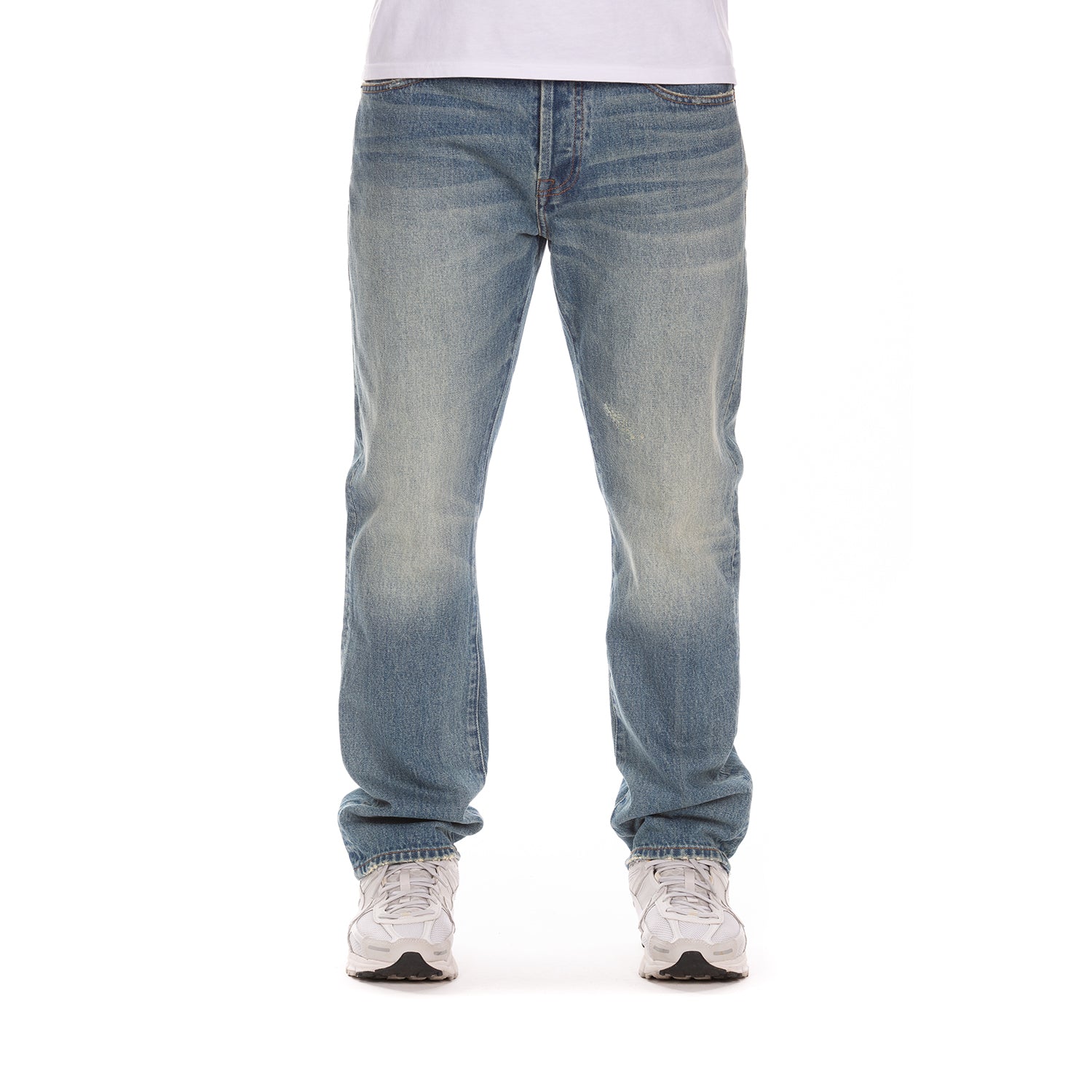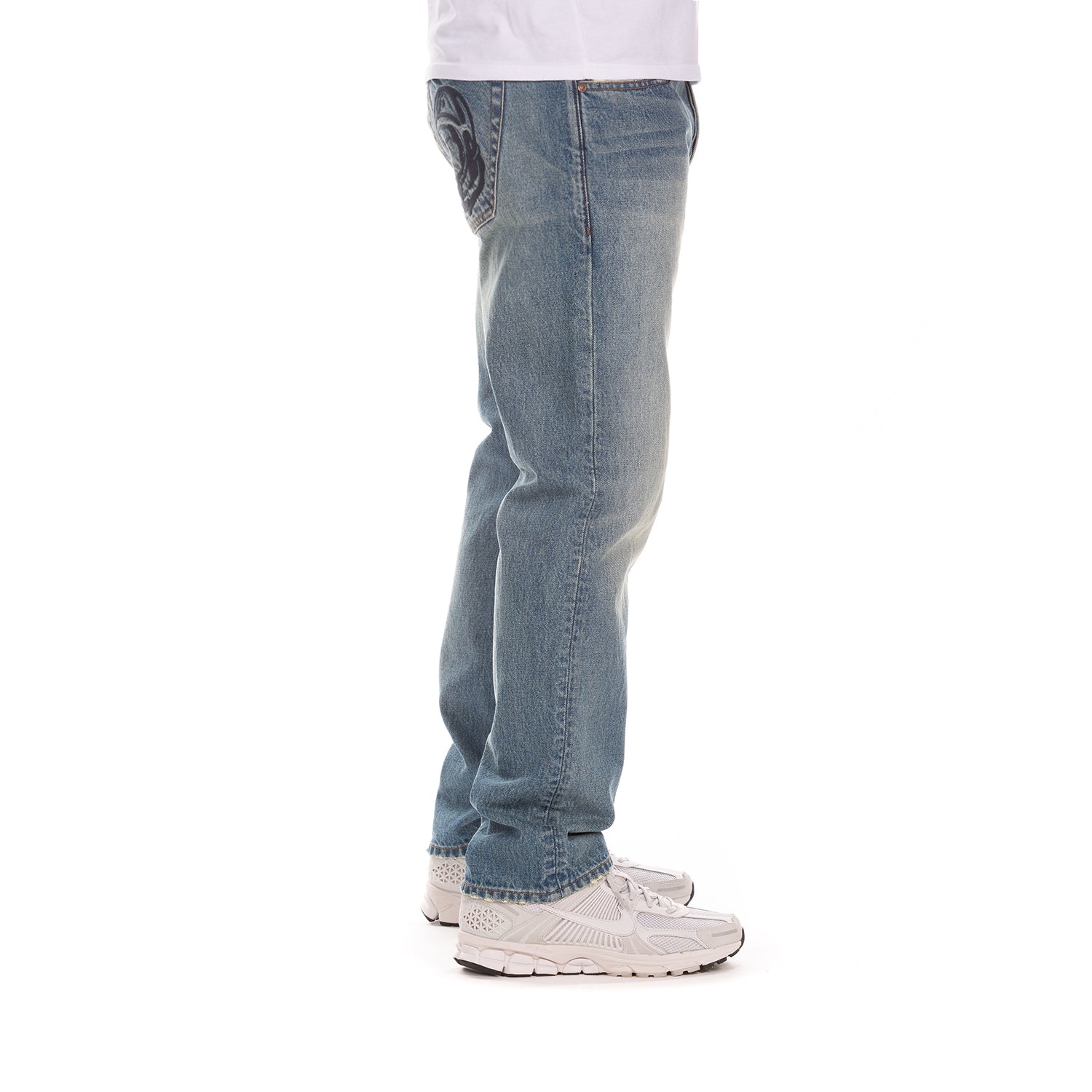 - Classic mid-wash denim with subtle fading for a timeless streetwear look