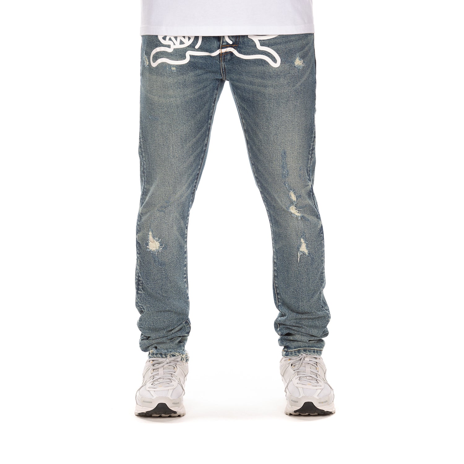 Distressed detailing – light ripping and subtle abrasions throughout the legs add a worn-in, authentic look