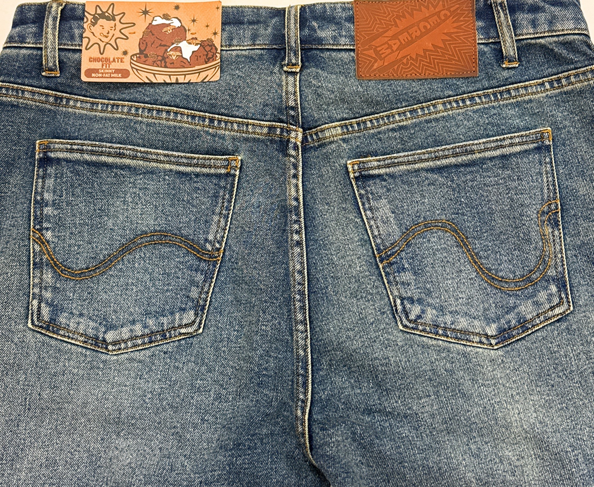 Classic five-pocket construction – includes traditional front and back pockets with branded stitching for a clean, timeless finish